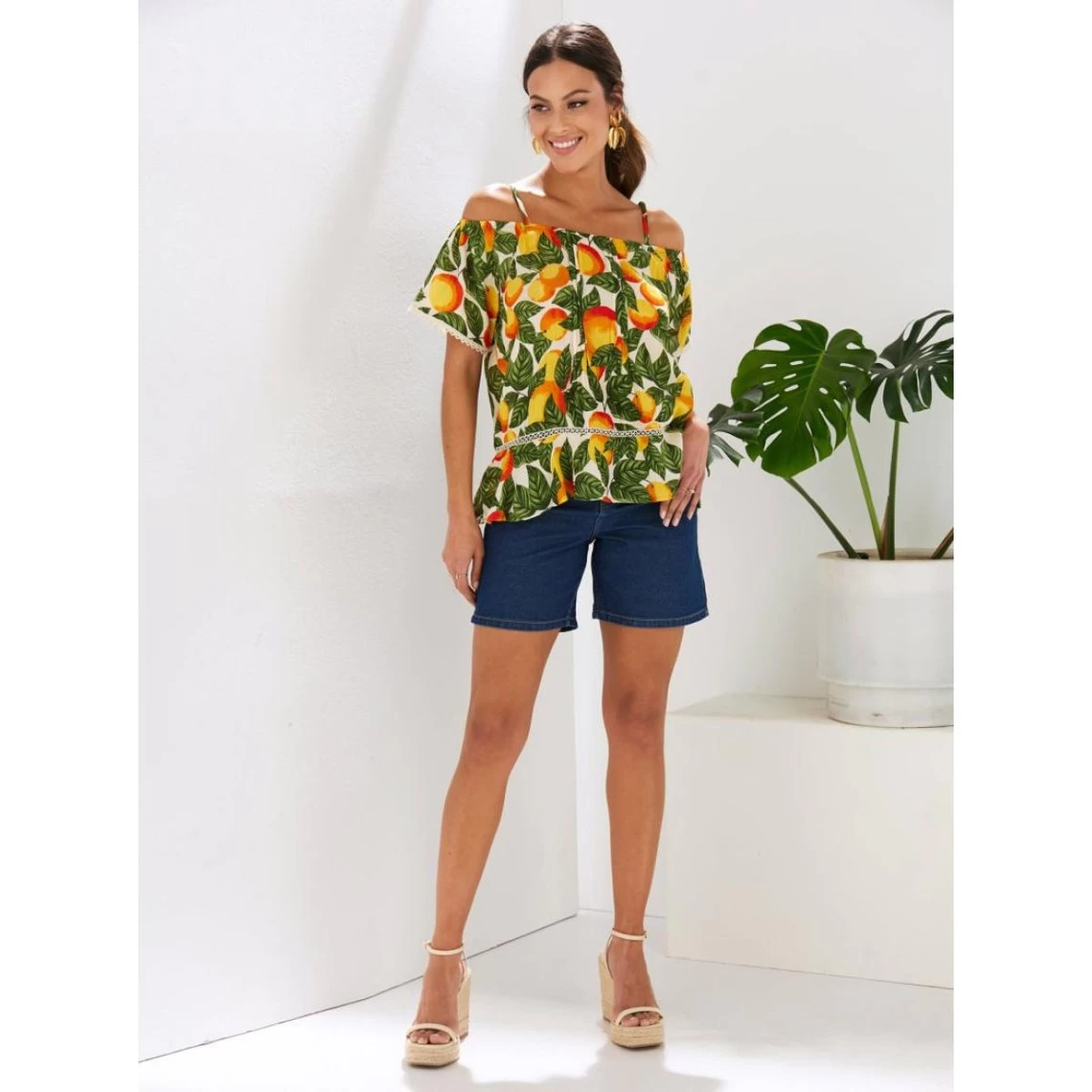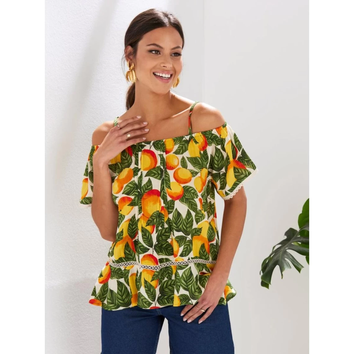 Encolure sans bretelles Bretelles réglables Plis sur l’avant Manches courtes raglan avec ceinture intérieure élastiquée Ruban fantaisie sur le revers de la manche Volant à l’ourlet avec ruban fan